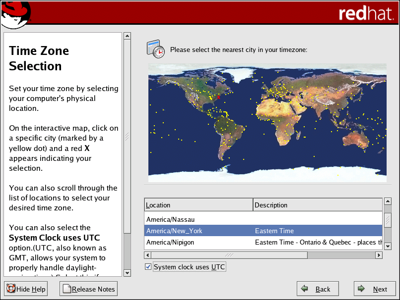 • You can also scroll through the list at the bottom of the screen to select your time zone. Using your mouse, click on a location to highlight your selection.