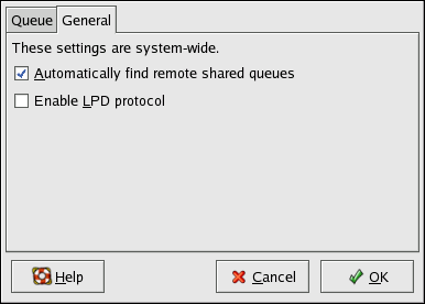 Automatically find remote shared queues — Selected by default, this option enables IPP browsing. When other machines on the network broadcast the queues that they have, the queues are automatically added to the list of printers available to the system; no additional configuration is required for a printer found from IPP browsing. This option does not automatically share the printers configured on the local system.